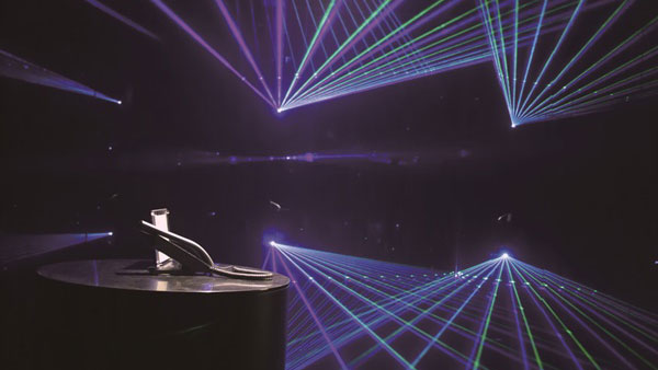 株式会社じげんの遊び心あふれるオフィスエントランス写真。レーザー光線が舞う受付。