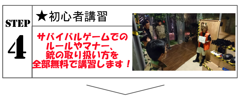 ・初心者講習(サバゲーのルールや、マナーの説明):5分程度