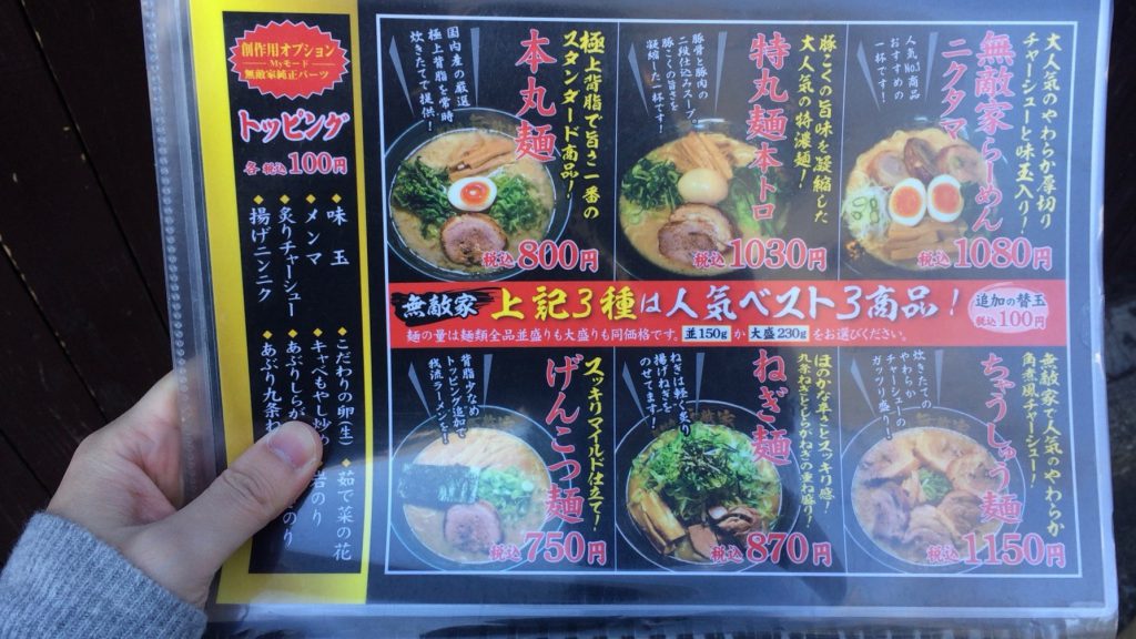 この日は初の無敵家さんだったので、スタンダードな本丸麺をお願いしました。