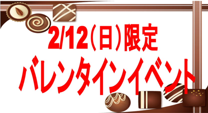 2/12(日)の『バレンタインイベント』では、男性参加者の皆さんにBB弾100発&バレンタインチョコをプレゼントします!