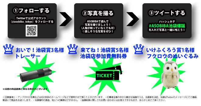 ③ハッシュタグ「#ASOBIBA池袋爆誕」をつけて呟くだけ!