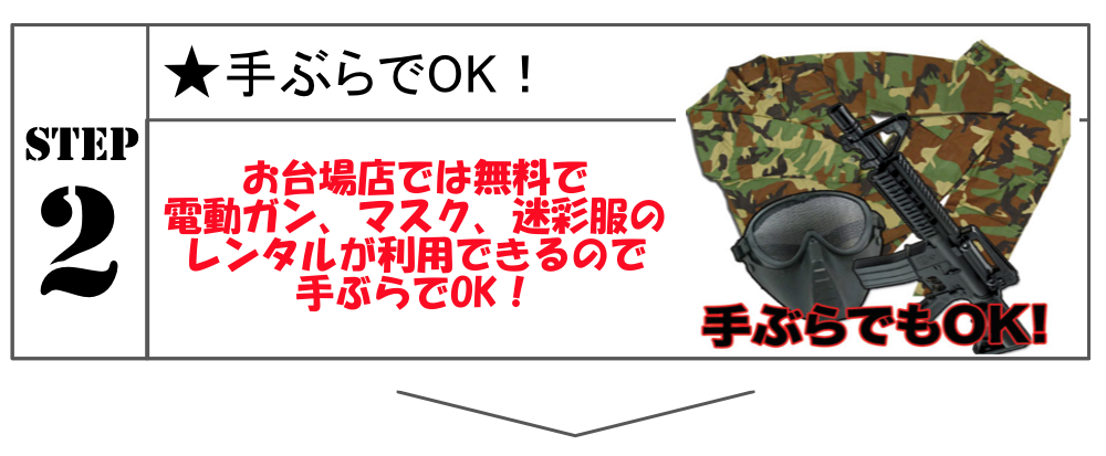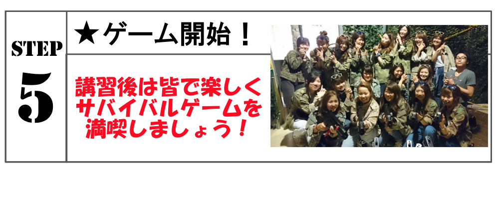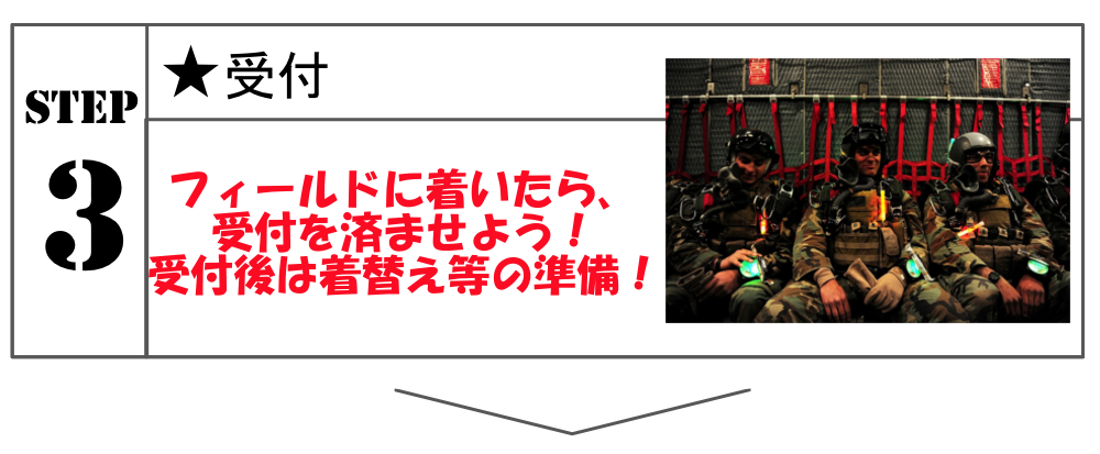 ・初心者講習(サバイバルゲームのルールや、マナーの説明):5分程度