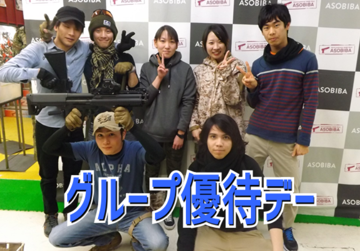 グループ優待デーなら、3名様以上でサバゲーに参加をすると当日のレンタル代が全て無料になります!