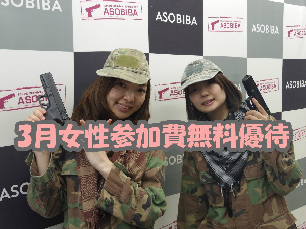 3月も初サバゲー女子の方、女性サバゲーマーの方は参加費無料の優待やりますよ~( *´艸`)