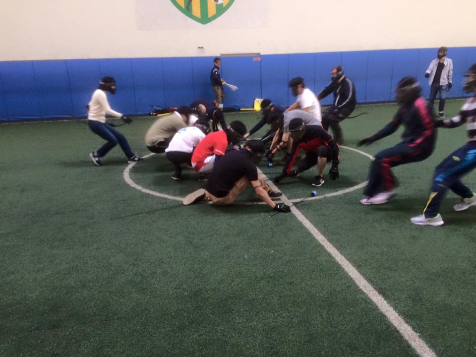 アーチェリーを使ったドッヂボールです。走り回って矢を射ったり、バリケー