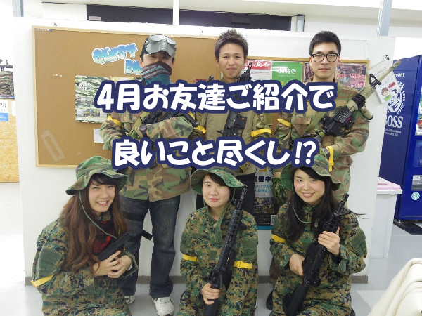 今回はASOBIBA会員様が初サバゲーのお友達、職場の同僚の方と2名様以上で参加して頂けると…