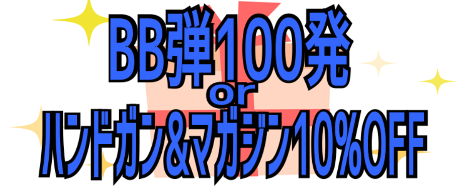 ◆1週間前に予約すると「BB弾100発プレゼント」もしくは「ハンドガン&マガジン10%OFF」!