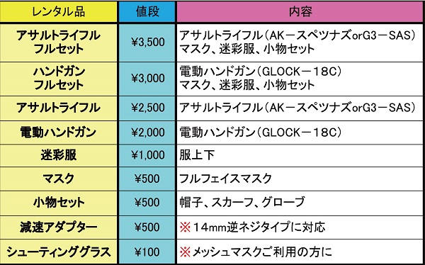 ※ルール説明、銃の扱い方、安全講習させて頂きますので、未経験の方もご安心ください!