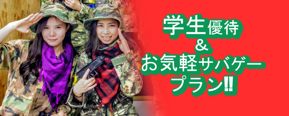 【学生レンタル無料】&【初サバゲーの方は2時間2000円お気軽プラン】