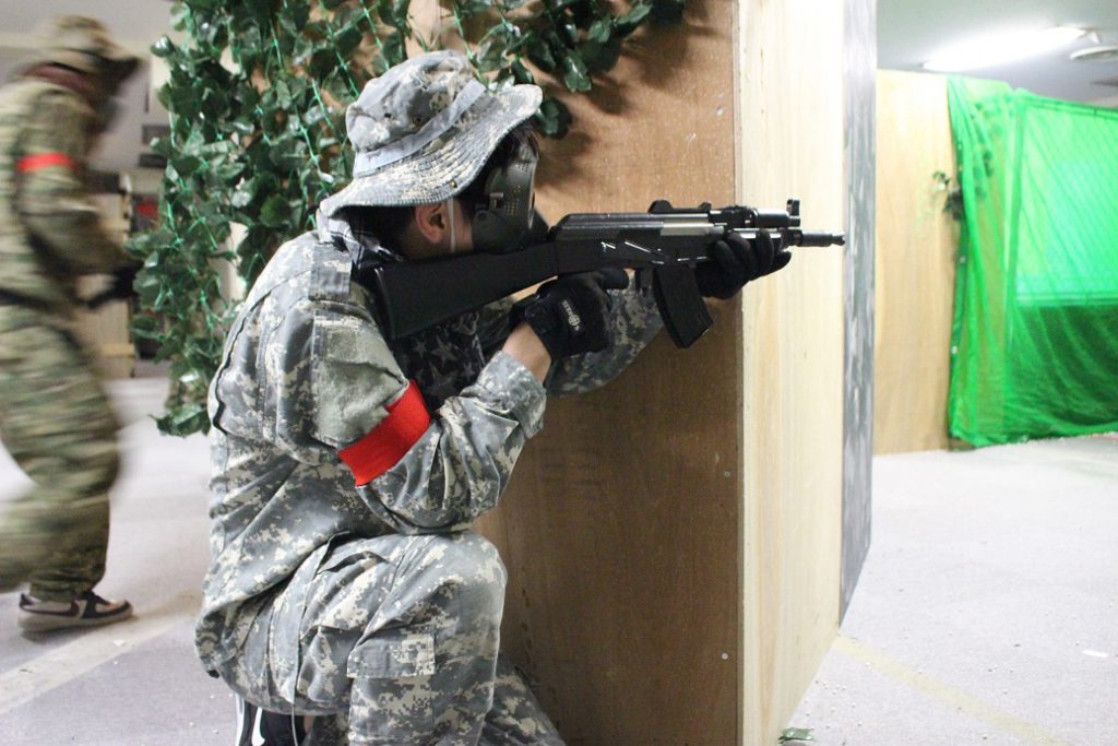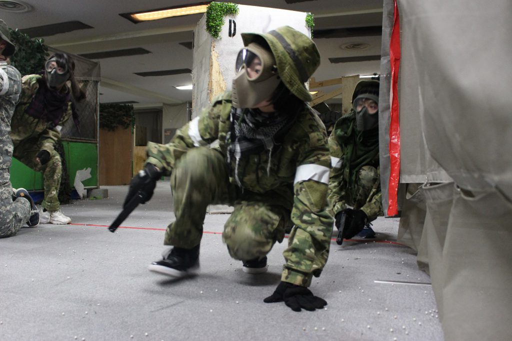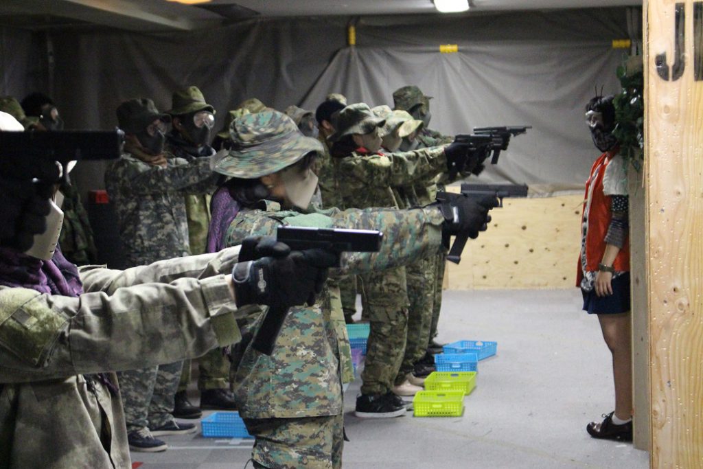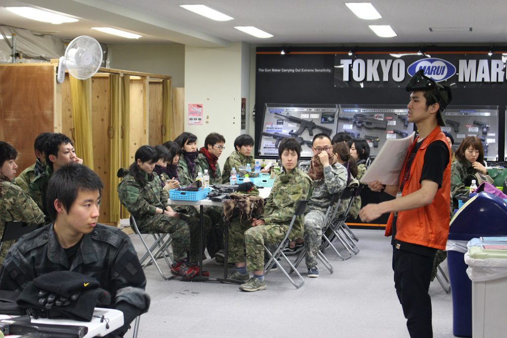 座学でルールを学んだ後には、エアガンを安全に取り扱う為際の講習が始まります。