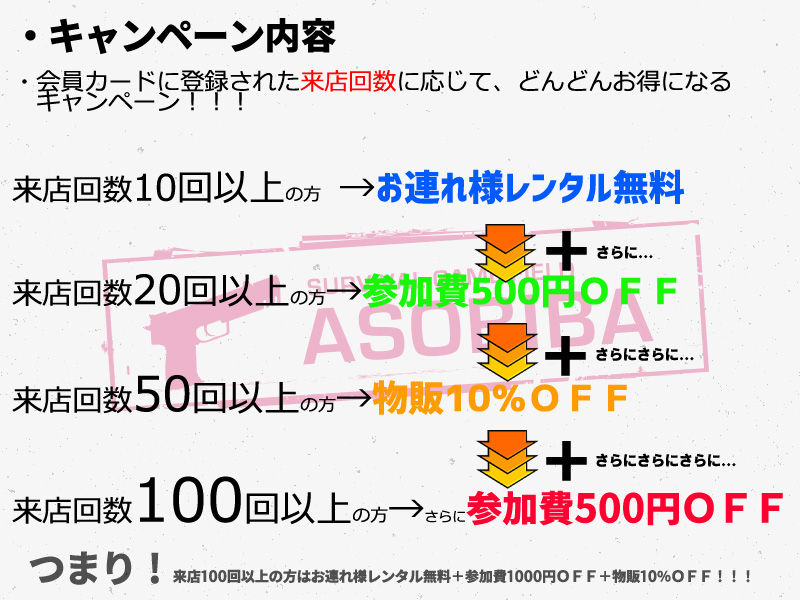 ◆内容:来店回数に応じたキャンペーンありフリー参加戦