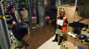 | 受付&準備 受付で安全・安心に遊ぶための確認書に署名します。 その後ゲーム参加のための着替えなど準備をします お会計はゲームがすべて終わった後になります。 |