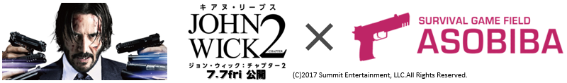 6月20日よりサバイバルゲームフィールドASOBIBAのツイッターアカウントより発信される予告ツイートを自身のアカウントでリツイートすれば、抽選で2組4名の方に「ジョン・ウィック:チャプター2」の映画観賞券をプレゼント!