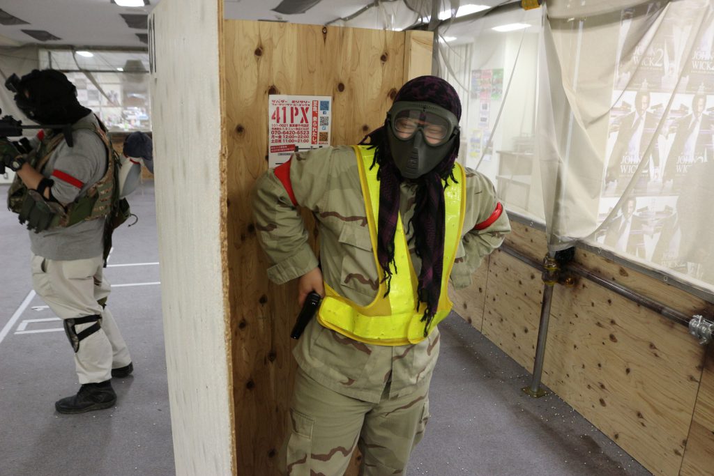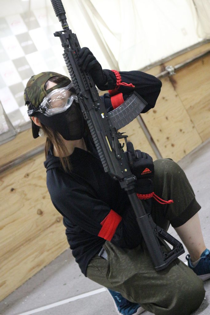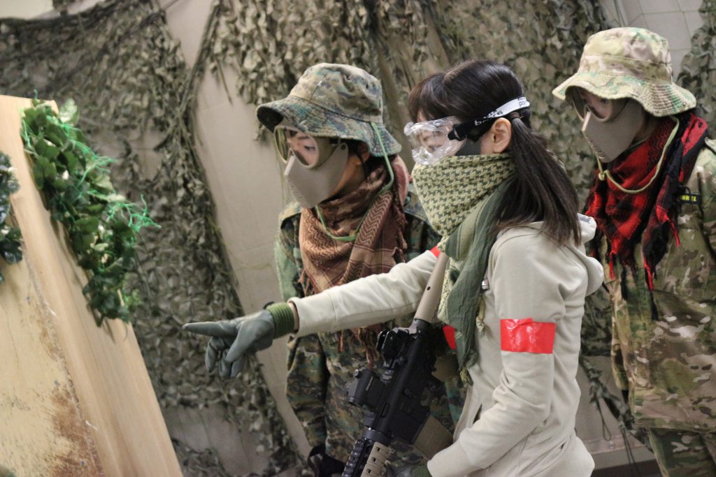 上級女子サバゲーマーが初心者女子サバゲーマーを導く~の図です