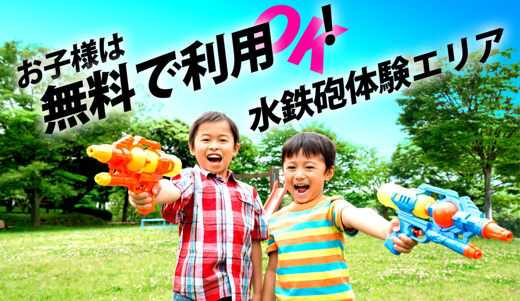真夏にぴったり!!お子様専用の無料で利用できる水鉄砲体験エリアも常設!