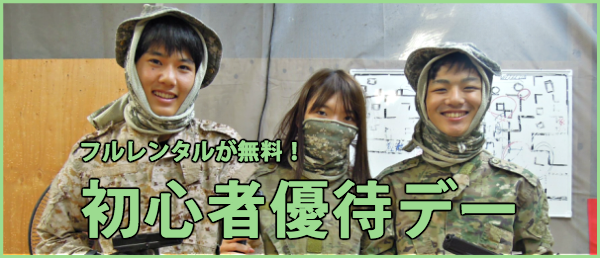 初心者優待デーなら参加費のみでサバゲーが出来ます!!