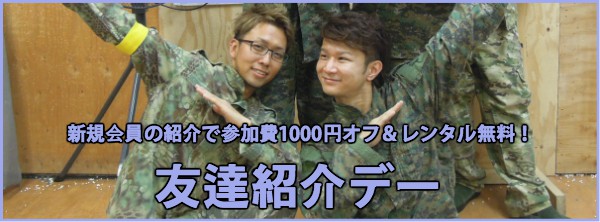 友達紹介デーでは、カードを持っているお客様ならレンタルがなければ参加費だけの『3,000円』になり、新規のお客様は参加費『4,000円』だけでサバゲーが出来ます!!