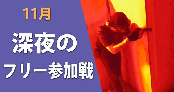 11月もASOBIBA大阪日本橋店では、朝までサバゲーが出来る『深夜のフリー参加戦』を実施します!