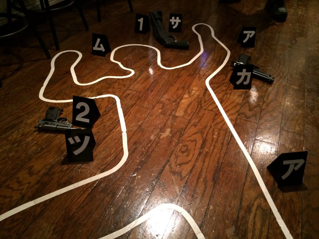 事件現場の白線や、傷メイクのサービスなどもあるので、記念撮影もバッチリ!