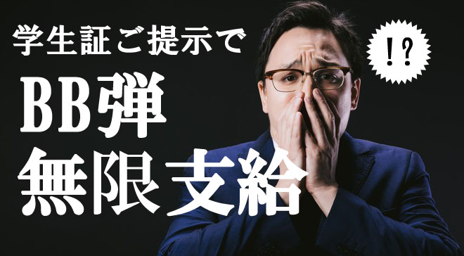 なんと、学生証ご提示でBB弾無限支給しちゃいます!!