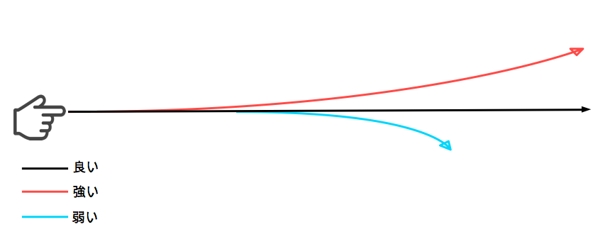 ざっくり言えば強くかければ遠くまで飛びますが、かけ過ぎるとギュイーーンてなって天井に当たります