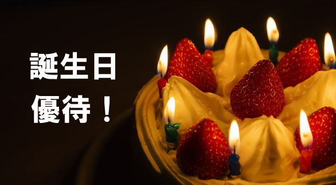 ※誕生月の方が受けられる優待は一月に一回とさせていただきます。