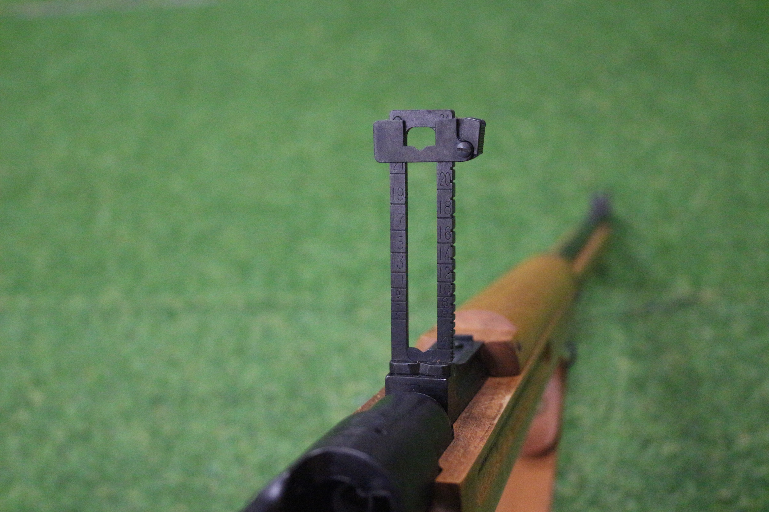 照門(リアサイト)を立てると最大2,400mまで狙えます。