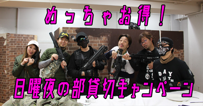 日曜夜の部に貸切すると、レンタル代が無料になります!