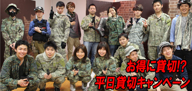 貸切キャンペーンなら参加費の30,000円(1人あたり3,000円)だけでサバゲーが出来ます!