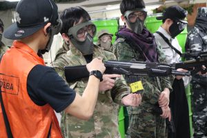 座学でルールを学んだ後には、エアガンを安全に取り扱う為の講習が始まります。