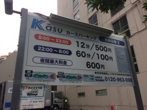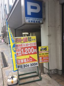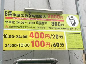 こちらは大通り沿いの駐車場です、横断歩道を跨ぎますが、なかなかリーズナブルです。