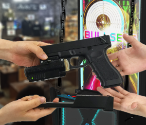 大型モニターに表示されたターゲットに向けて、エアソフトガンでBB弾を実際に撃つことで、リアルな衝撃と爽快感を手軽に楽しめる競技性の高い大人向けシューティングアトラクションです。