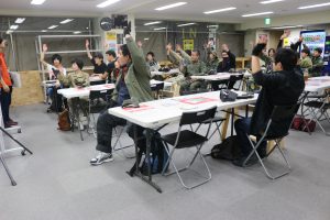 座学でルールを学んだ後には、エアガンを安全に取り扱う為の講習が始まります。