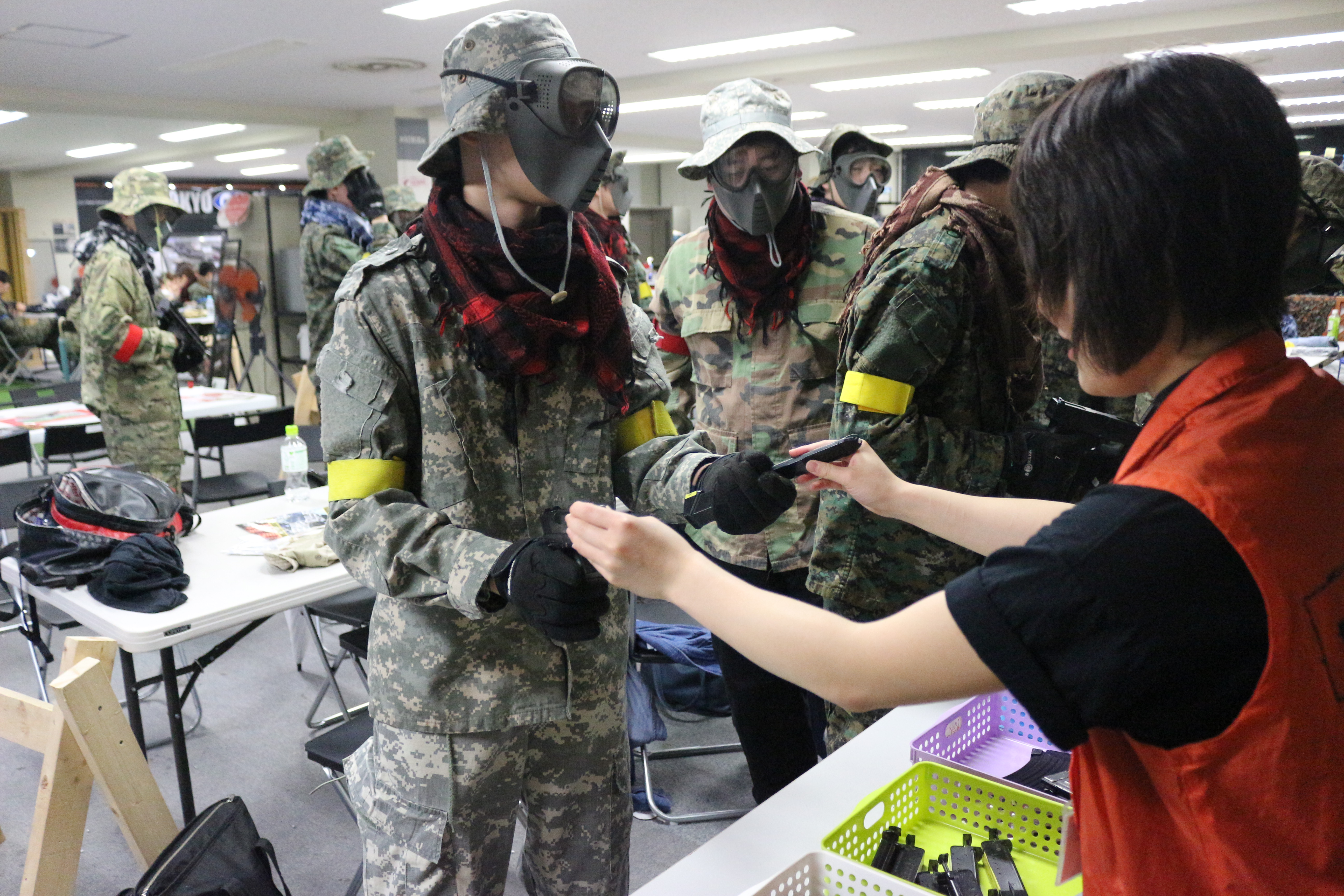 座学でルールを学んだ後には、エアガンを安全に取り扱う為の講習が始まります。