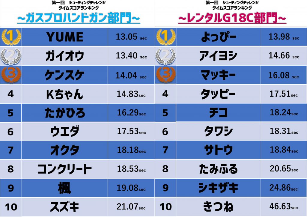 8月は「レンタルハンドガンG18C」「ライフル部門」で最速を目指せ!