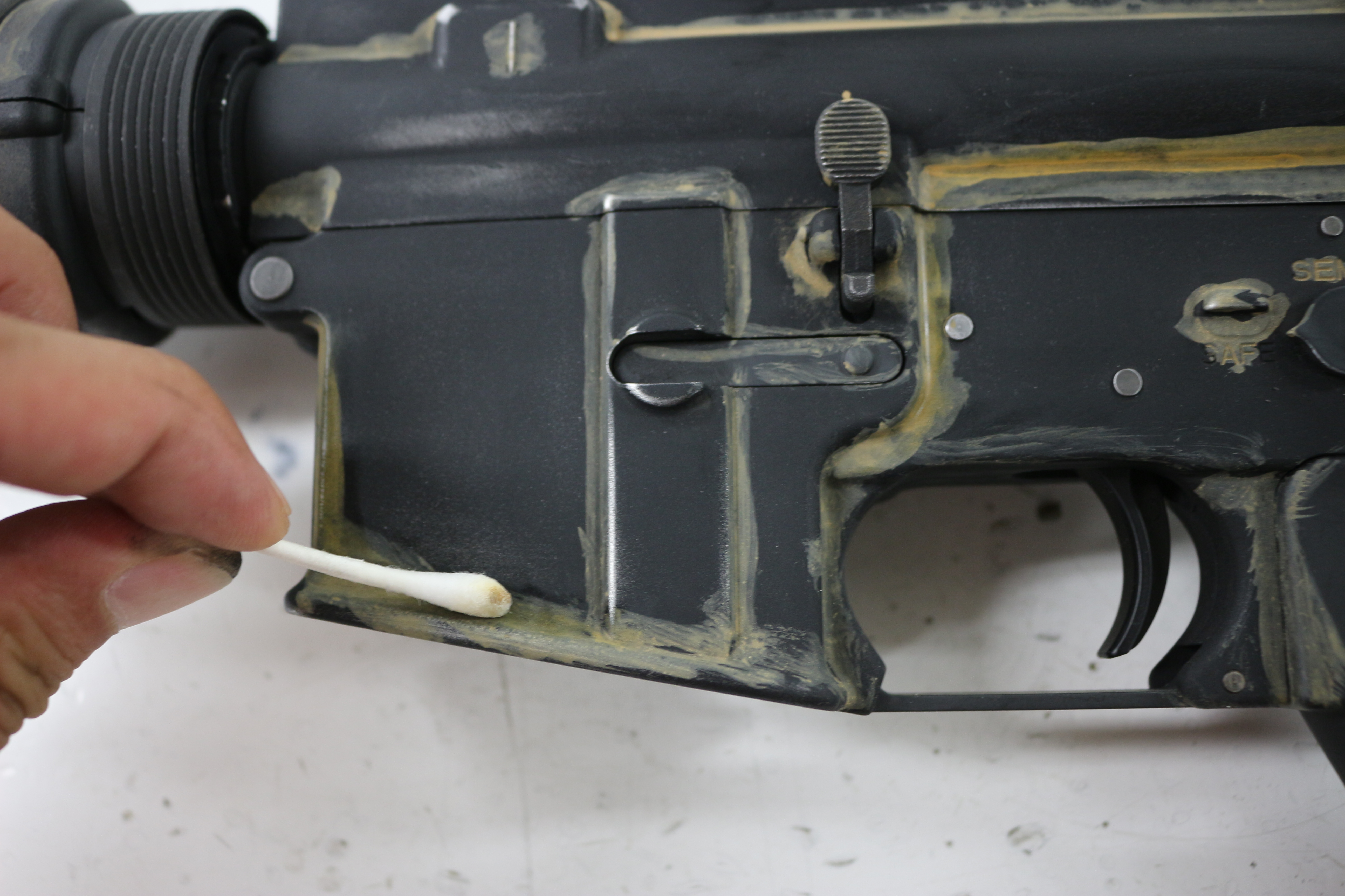 ティッシュでガシガシっと拭き取る事により、実際に戦場で使用して汚れた感が出ましたね〜。
