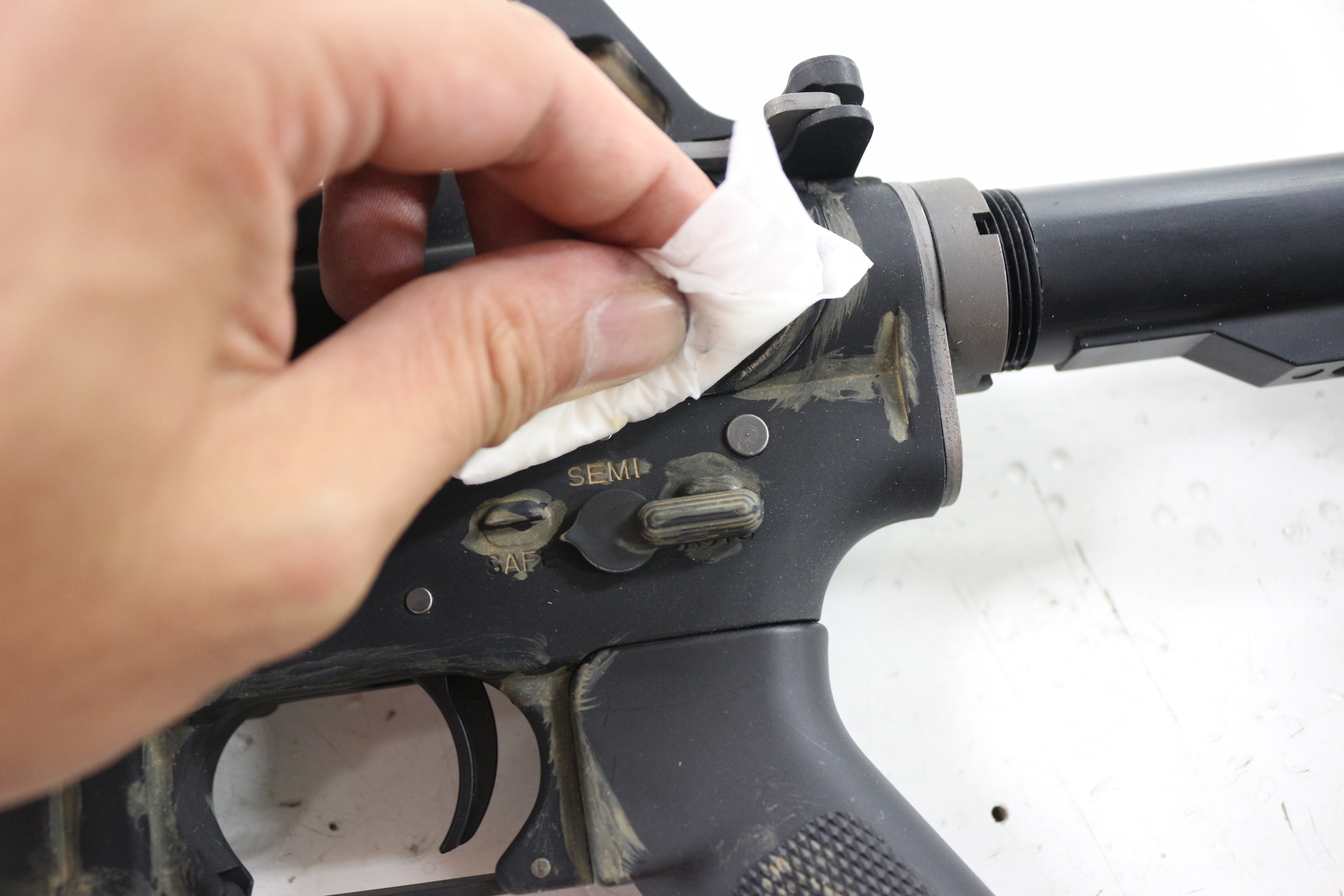 手が触れる所、衣服や装備と擦れる所、可動する所はしっかり目に拭き取りましょう。