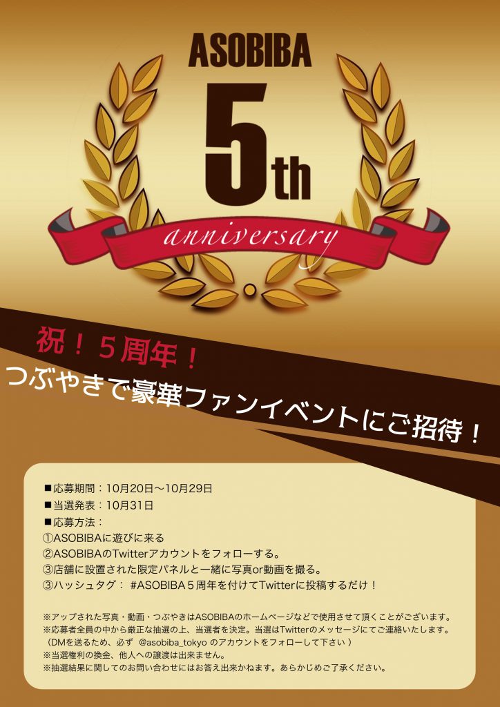 ASOBIBAは2018年10月で5周年を迎えます!
