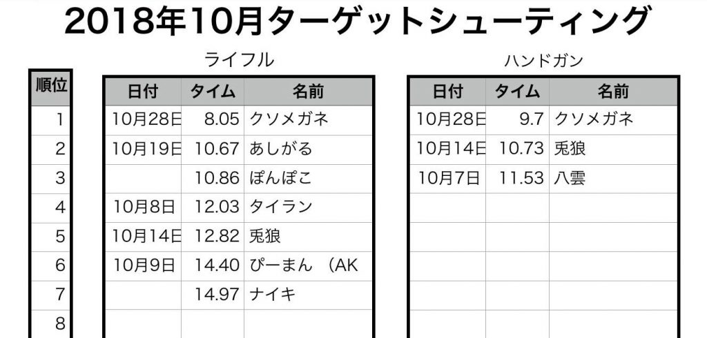 10月ターゲットシューティング、ランキング結果発表