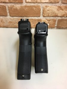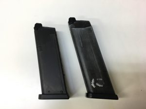 マガジンのサイズが今までのGLOCKシリーズと違い小さいので、G17のマガジンを入れると少し不恰好になってしまうことですね…