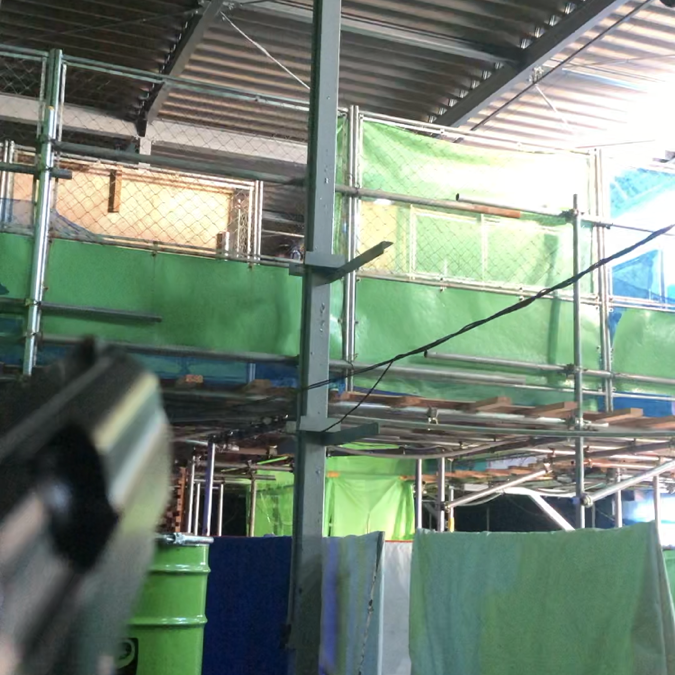 足場は工業地帯の新木場ならではの工事現場っぽさ!(褒めてます)