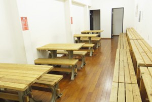 更衣室はセーフティの奥に2部屋あります。セーフティはエアコンも効いており、テーブルは密集していますが壁上部に単管で組み立てられた棚があるのでかなり快適に過ごせます。