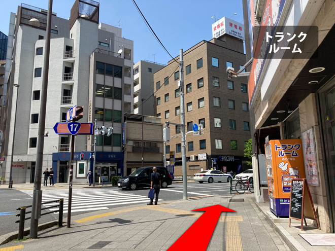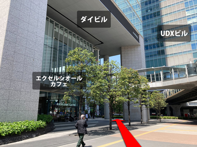 そのままエクセルシオールカフェを左に見ながらまっすぐ進みましょう。