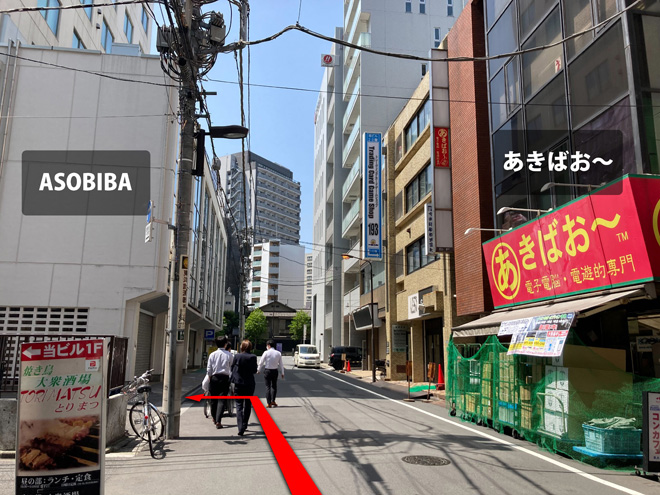 そこそこ駅近でアクセスも良い(と自負している)ASOBIBA秋葉原店ですが、土地勘が無いとつい迷ってしまいがち。