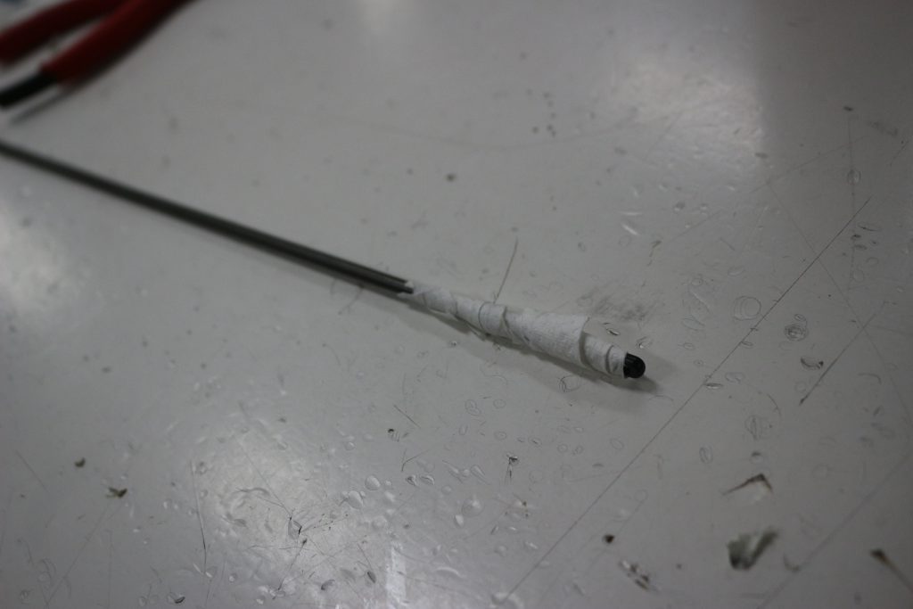 こんな感じでクリーニングロッドにティッシュを巻きつけて、、、