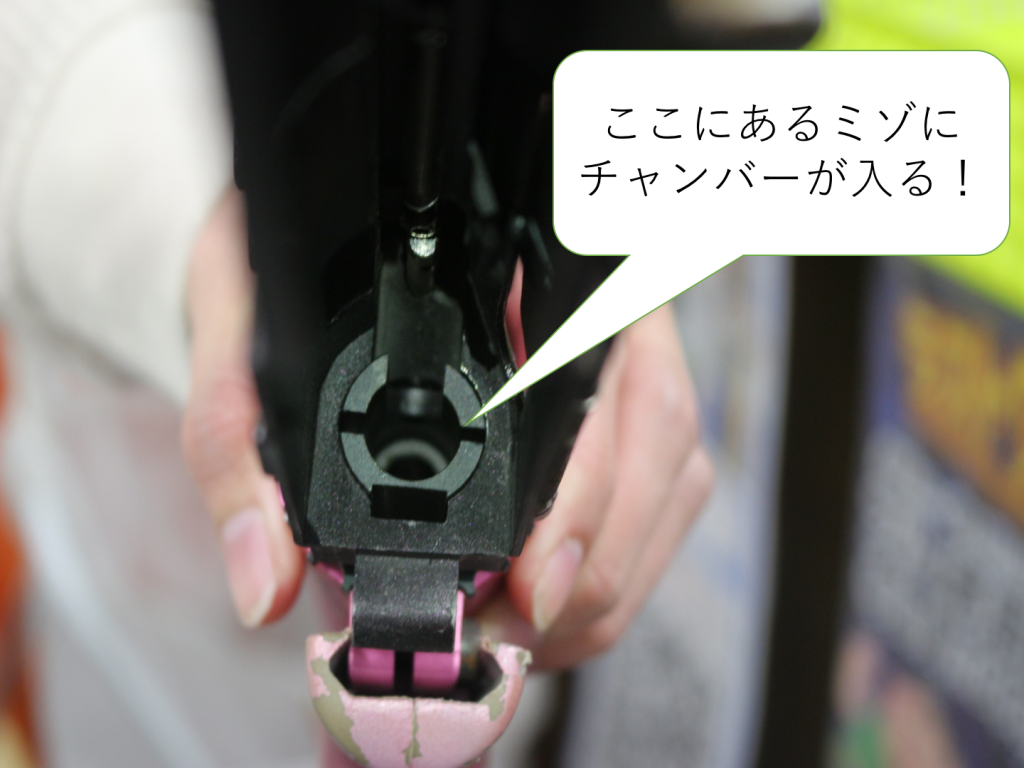 フレームに差し込む形で固定するチャンバーですが、こちらもインナーバレルと同様、フレームとチャンバーの間に隙間がある場合が多く、カスタムパーツを新たに買って組み込んだとしても、この隙間が発生しているとカスタムパーツの良さを発揮できない場合がございます!