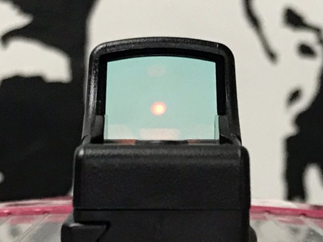 銃を構えてサイトを見ると、このようにドット(光る点)が見えます。