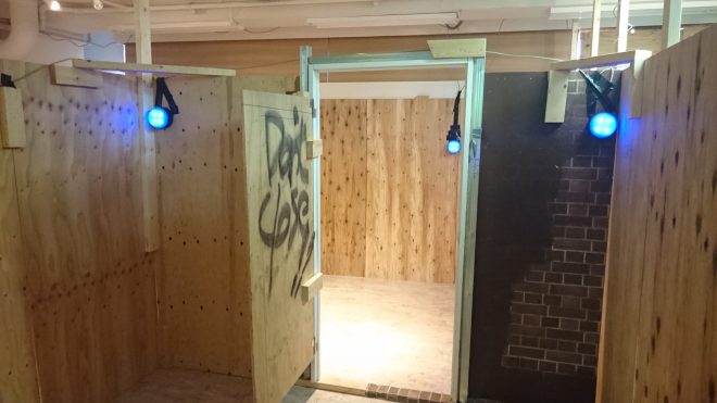 今回前回のように小部屋に入ってからUターンするのではなく、道中で一度ターンして後ろの的を撃つ仕組みになっています!