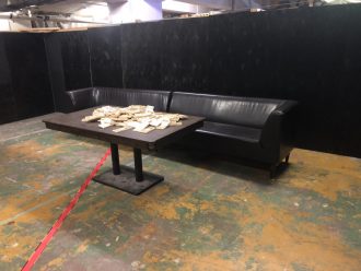 以前は札束が山積みのテーブルやベンツの廃車などがありましたが、それらは全て残しておき、場所だけ移動しました!