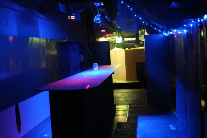 そしてパーティールームでエモい写真を撮るのに最適だったバーカウンターは、さらに色鮮やかになって通路にお引越ししました!よりライトが鮮やかになっています。